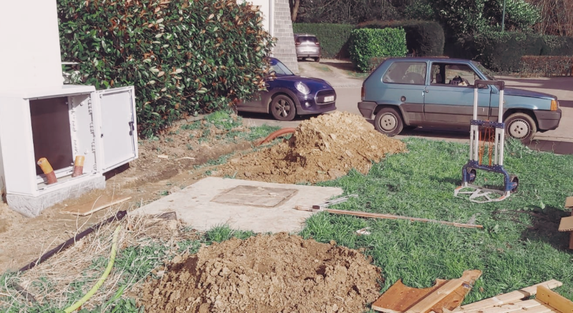 Suite à la demande d'un maraicher du sud-ouest de la capitale, je place l'alimentation d'un terrain agricole depuis l'armoire de trottoir jusqu'au centre du champ. Les besoins en électricité ne sont pas des moindres : charges d'outils électroportatifs, d'utilisation de station de lavage et de frigos de conservation des fruits et légumes frais.